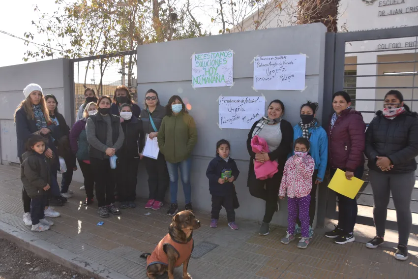 Un grupo de padres reclama en las puertas de una escuela en Capital.