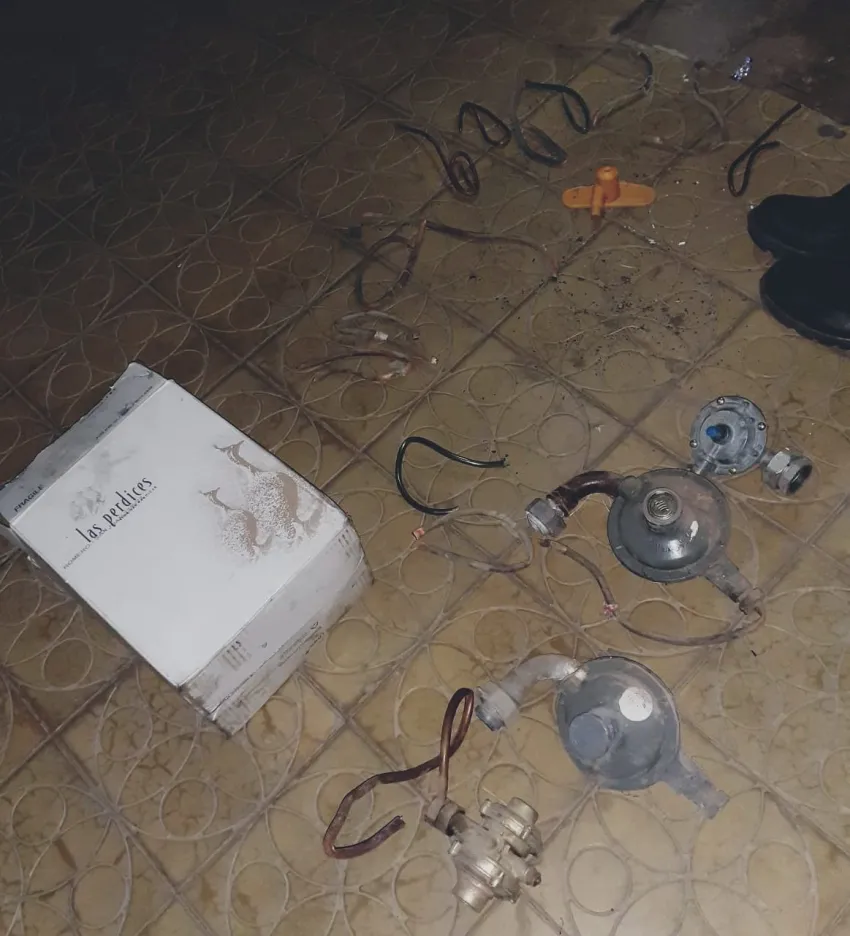 Al requisarlo el mismo llevaba una caja de vino conteniendo en su interior 4 reguladores y 13 caños de cobre y aluminio aparentemente el cual los había sustraído de los gabinete de gas anteriormente mencionados.