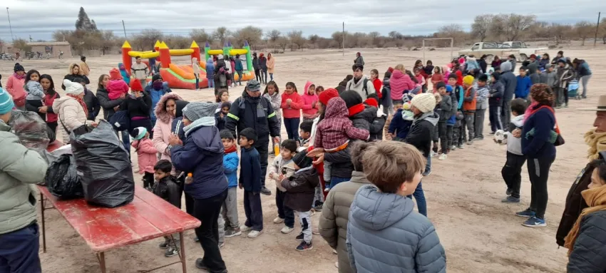 El Grupo Amigos de Brochero, encabezados por Oscar Sánchez y muchos colaboradores llegaron hasta el límite entre San Juan y Mendoza a las comunidades huarpes. El objetivo era compartir un día especial, donde además de llevar solidaridad venían acompañados por el padre Pepe Nieto, quien llevó la palabra a esos lugares recónditos de San Juan.