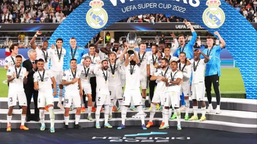 El Merengue derrotó al Eintracht Frankfurt 2-0 en la final de la Supercopa de Europa. Los goles fueron de David Alaba y Karim Benzema. Se disputó en el Helsinki Olympic Stadium, Finalndia.