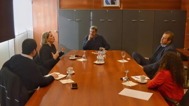 Luego de participar de la inauguración del centro de reparación de componentes y formación de técnicos para la minería, el titular de la cartera minera convocó a Germán Wilson, vicepresidente de operaciones y country manager de Finning CAT Argentina, a Daniela Flores, gerente de comunicaciones corporativas en Sudamérica, y a Tomás Bidegain, gerente de legales de la compañía.