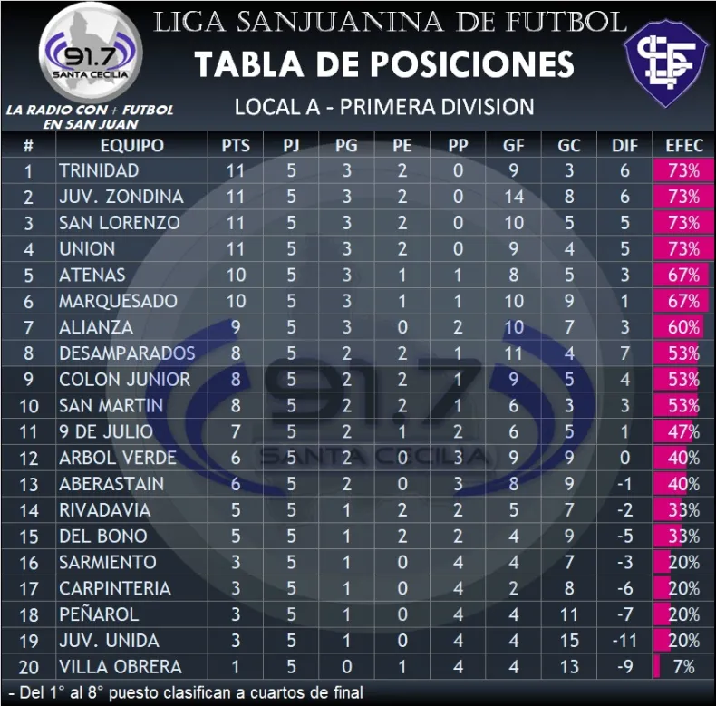 La fecha se había iniciado con el triunfo de Unión 2 a 1 sobre Atenas, San Martin 4- Del Bono 0, Juventud Unida 2 - Rivadavia 1, Marquesado 2 - Carpintería 1 y Villa Obrera 0 San Lorenzo 0.