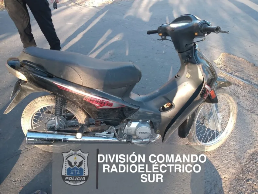 Ahi fue que lo frenaron y lo entrevistaron, se dieron cuenta que era un chico de 16 años de edad. Al consultar los datos del rodado, el dominio pertenece a otra moto, la que está denunciada en Comisaría Sexta, el 18/08/22, con intervención del Tercer Juzgado de Instrucción.