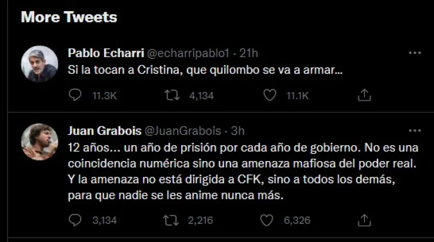 12 años... un año de prisión por cada año de gobierno. No es una coincidencia numérica sino una amenaza mafiosa del poder real. Y la amenaza no está dirigida a CFK, sino a todos los demás, para que nadie se les anime nunca más.