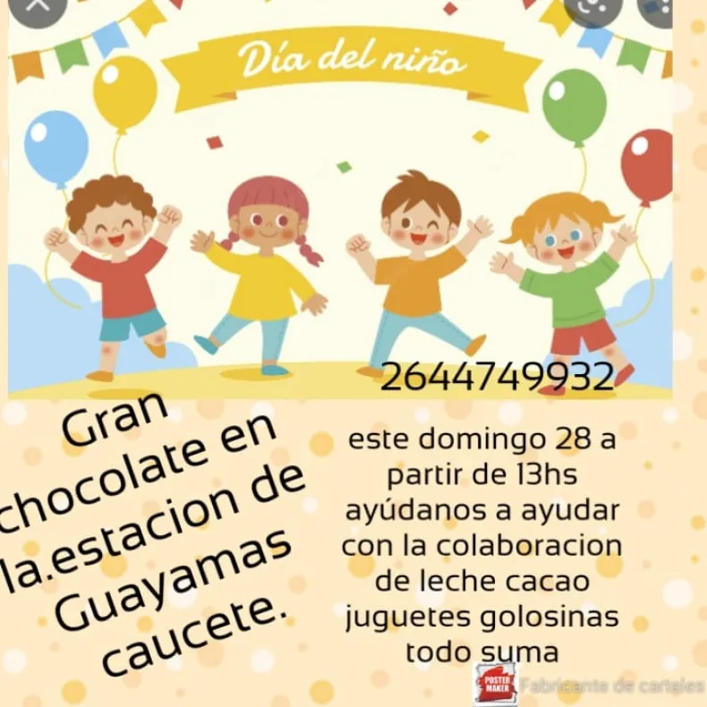 Mirá el pedido de la panadería: "Hola somos panificadora el gauchito Gil. como todos los años, organizamos un chocolate del día del niño pensando en los más olvidados niños de la estación de Guayamas. Lo hacemos siempre pensando en llevarle un pequeño mimo para sacarle una sonrisa. Hace dos años que no se hace por el tema de la pandemia y muchos años atrás lo disfrutamos llevándole comida y un gran chocolate. Este año, le queremos llevar milanesas con papas fritas ya que para ellos todo es una sorpresa. Por eso, pedimos la colaboración de leche, chocolate, juguetes y golosinas. Nuestro objetivo es que ellos pasen un día diferente".