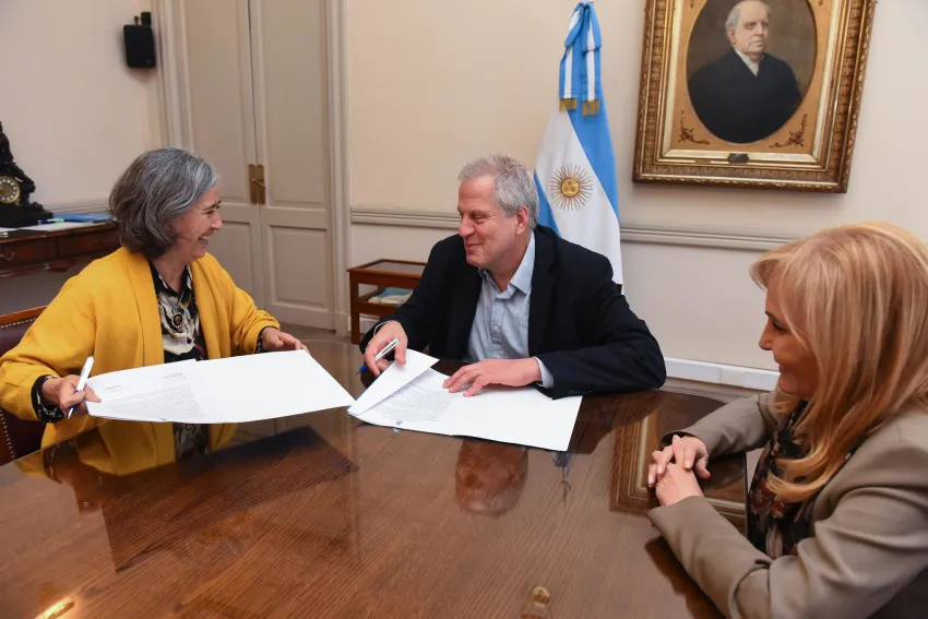 Firman convenio por extensión horaria en escuelas primarias. La ministra de educación Cecilia Trincado y el ministro de Educación nacional, Jaime Perczyk, rubricaron el convenio que extiende una hora la jornada escolar en SJ.
