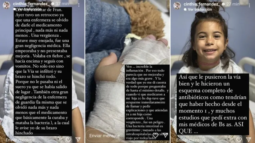 "Imaginate que un médico me preguntó por qué le dieron un antibiótico que le dieron, así que hay que rezar para que no vomite, porque hoy a la mañana volvió a vomitar, y estamos tratando de que tolere los líquidos", agregó angustiada.
