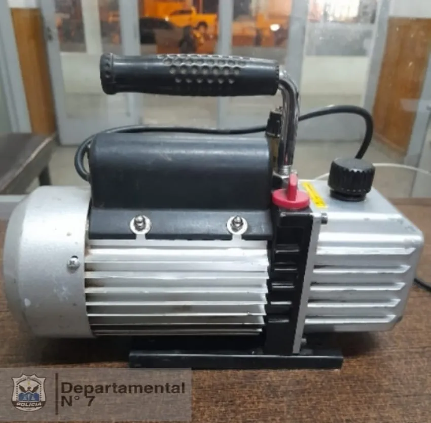 Los investigadores conjuntamente con el denunciante se acercaron hasta una vivienda del barrio Conjunto 10, en Chimbas. Allí, secuestraron la bomba de vacío denunciada previo a haber sido reconocida por el propietario.