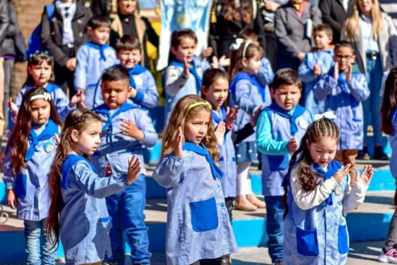 En la plaza General San Martín predominó el blanco de los docentes y alumnos que formaron parte de los festejos por el Día del Maestro en Jáchal.