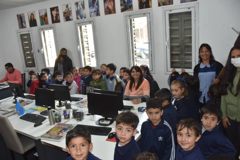 Los alumnos de tres salas del ENI N°9 de Trinidad, visitan el edificio del Grupo de Medios Zonda.