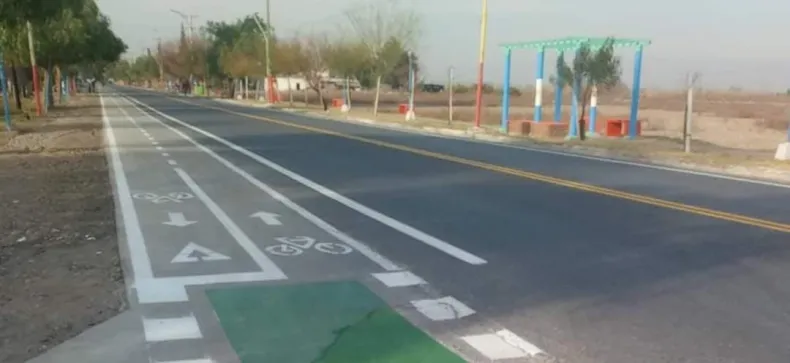 La primer bicisenda en Angaco es una realidad. La obra se lleva adelante en calle Nacional desde Divisoria pasando calle Alem.