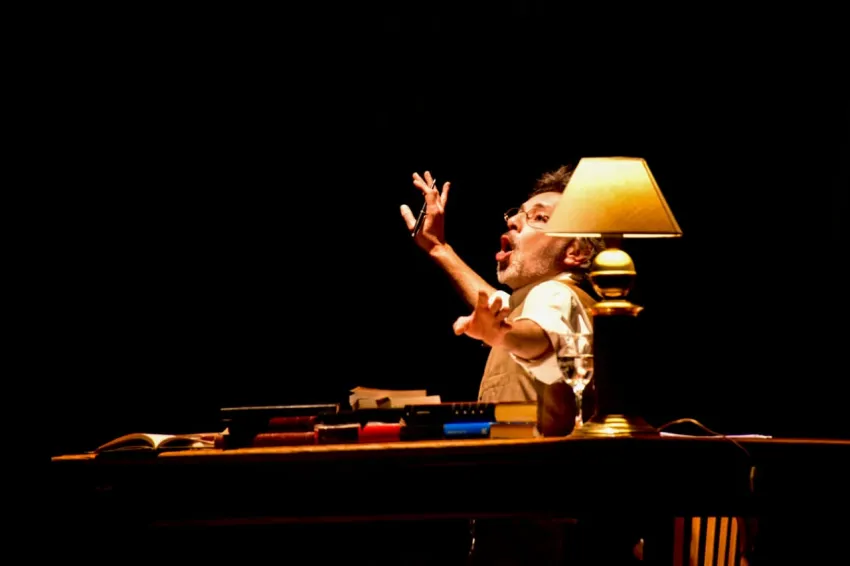 Un bibliotecario que intenta dar una conferencia, divaga ágilmente entre el humor y los libros que marcaron su vida. Navega entre sus amores y sus autores favoritos, en un viaje fluido y profundo por las palabras.