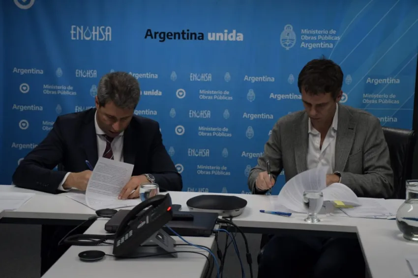 Estuvieron presentes además en el encuentro el ministro de Obras y Servicios Públicos, Julio Ortiz Andino y el presidente de Obras Sanitarias Sociedad del Estado, Guillermo Sirerol junto a los representantes de Enohsa.