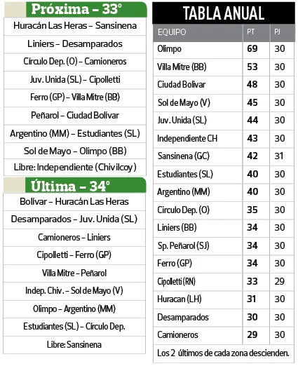 El Puyutano no depende de sí mismo, pero si gana las dos finales que tiene, ante Liniers en Bahía, y contra la Juve puntana en San Juan, tendrá muchas chances de salvar la categoría. Para eso, dependerá de que Huracán Las Heras, un punto arriba del víbora, no gane los dos partidos que tiene, frente a Sansinena en Mendoza o ante Bolívar de visitante. La otra es que no ganen más Cipo, Ferro, Peñarol o Liniers.