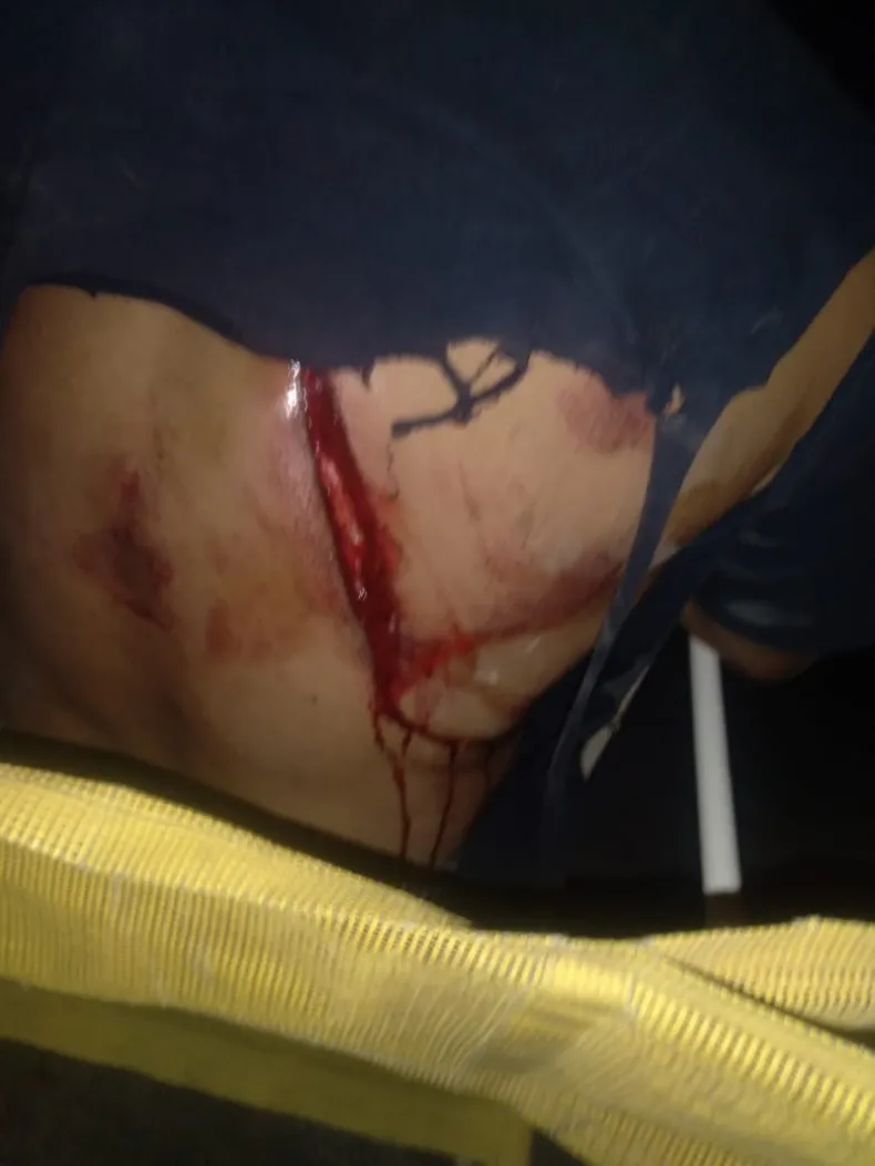 "Frenó dos cuadras más adelante, porque una pareja que iba arriba lo hizo frenar", contó el propio Olguín. Asimismo, agregó que fue el hombre de la pareja quien se bajó inmediatamente a auxiliarlo. "Me dejó la espalda tajeada y muy golpeado. Me destrozó", expresó el damnificado.