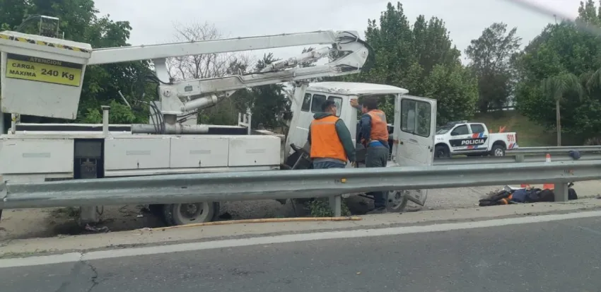 El chofer de un camión con grúa perdió el control del vehículo y sobrepasó las barreras de contención. Hubo tres hombres con lesiones como consecuencia del accidente.