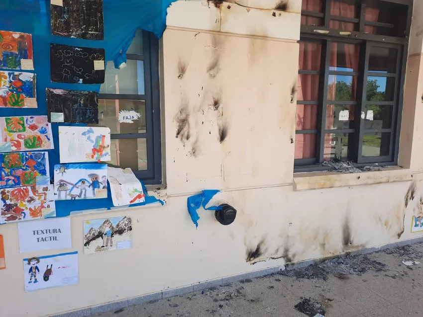 Iban a hacer una exposición y dañaron e incendiaron lo que habían preparado los alumnos. Afirman que se trata de un atentado en una escuela primaria.