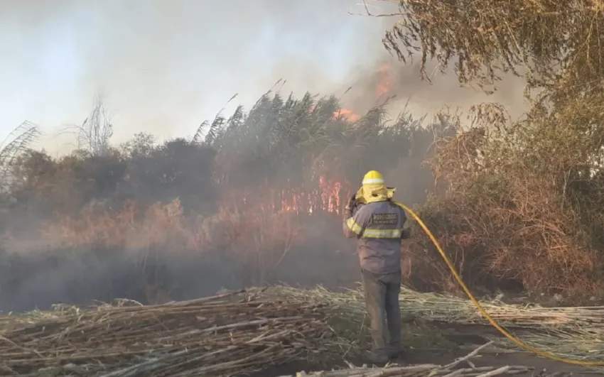 Un importante incendio se desató en 9 de Julio, luego de la caída de un poste de tendido eléctrico. Ocurrió sobre calle Los Alamos y Paraguay, donde se quemaron varias hectáreas de campo.