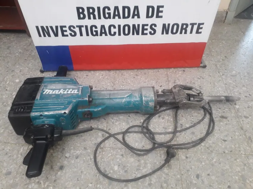 Los brigadistas secuestraron el martillo demoledor, marca Makita de 32 kg, 70 juls de potencia, y aprehendieron a un sujeto de 34 años, quien quedó alojado en Central de Policía, vinculado al delito de encubrimiento a disposición del Segundo Juzgado de Instrucción.