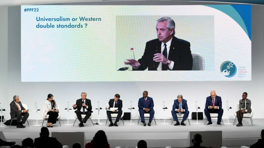 El mandatario argentino participó del panel "Universalismo desafiado por la Guerra en Ucrania" en el 5° Foro de París por la Paz, que encabezó el presidente francés.