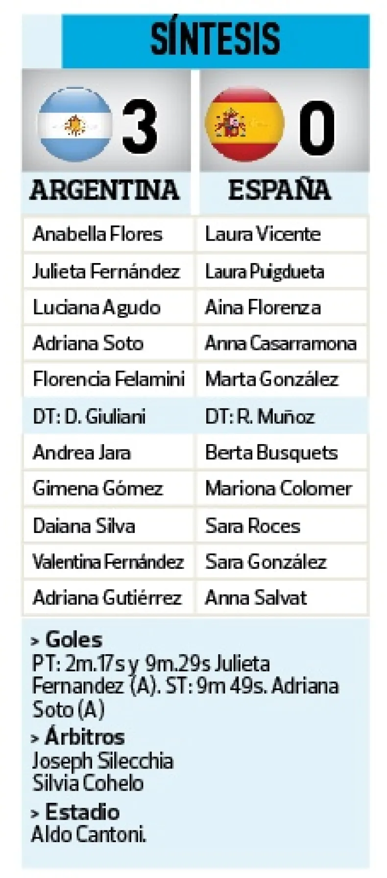 Y lo mejor que le pudo pasar al equipo de Giuliani fue dar el primer golpe. Antes de los 3 minutos ya lo ganaba con la gran jugada de Julieta, la reina del gol. Implacable para definir y abrir un camino claro a la victoria.