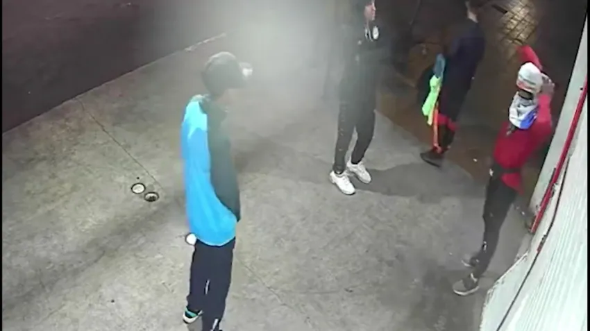 Un grupo de malvivientes es filmado por las cámaras de seguridad mientras roban un trozadero en Rawson.