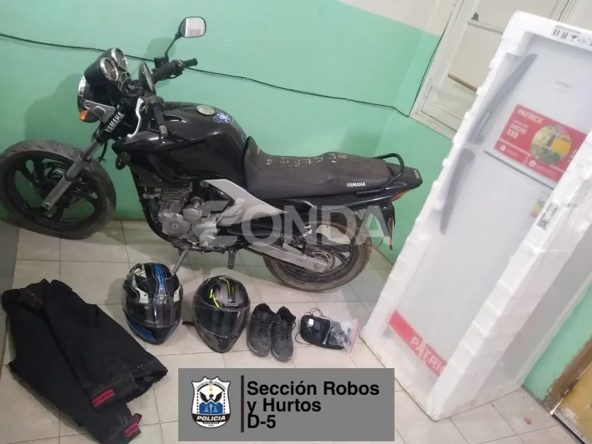 Este lunes detuvieron a un o presunto motochorro tras la investigación de un asalto millonario con dos víctimas. hicieron tres allanamientos y en una casa de La Bebida detuvieron a una persona con una moto, antecedentes y una heladera recién comprada.