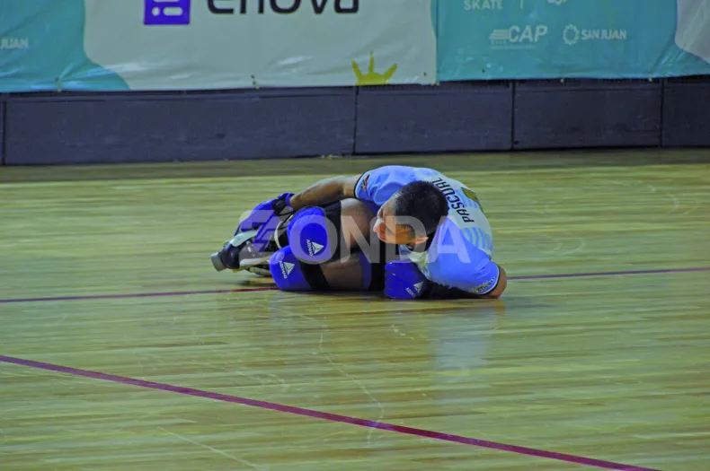Sobre cómo surgió la lesión, el profesional explicó que a Pascual se le trabó el freno en una de las publicidades colocadas en el parqué del Aldo Cantoni. "Queda fijo el pie y, con su inercia, el cuerpo gira y se hace una fractura de tibia y peroné", detalló.