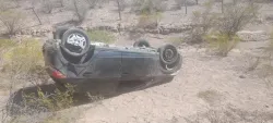 Perdió el control del auto en una curva y volcó