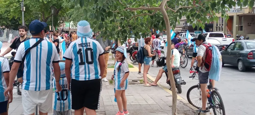 Allí, algunos sanjuaninos se reunieron con banderas, cornetas y mucha euforia para celebrar en conjunto la victoria que dejó a la Selección argentina con chances de avanzar a los octavos de final de la Copa del Mundo.