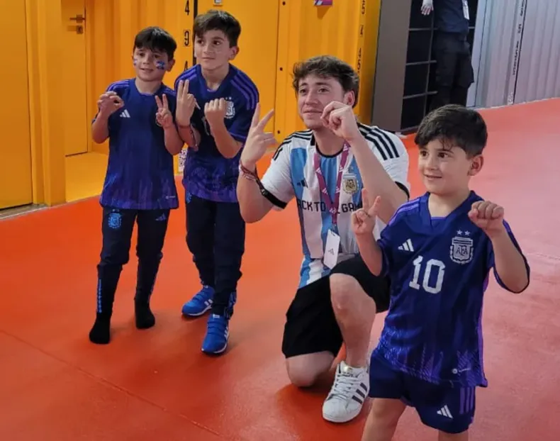 Justamente ello fueron los protagonistas de una historia que puede ser tomada como un presagio. Al caminar por un pasillo interno del estadio, se encontraron con el trapero argentino Paulo Londra, con quien se sacaron una foto. Con dos dedos de la mano y el puño cerrado en la otra, Thiago, Ciro y Mateo, junto a Londra, "relataron" el triunfo por 2-0 ante el conjunto europeo y de esta manera, la Argentina continúa en carrera en el Mundial de Qatar.