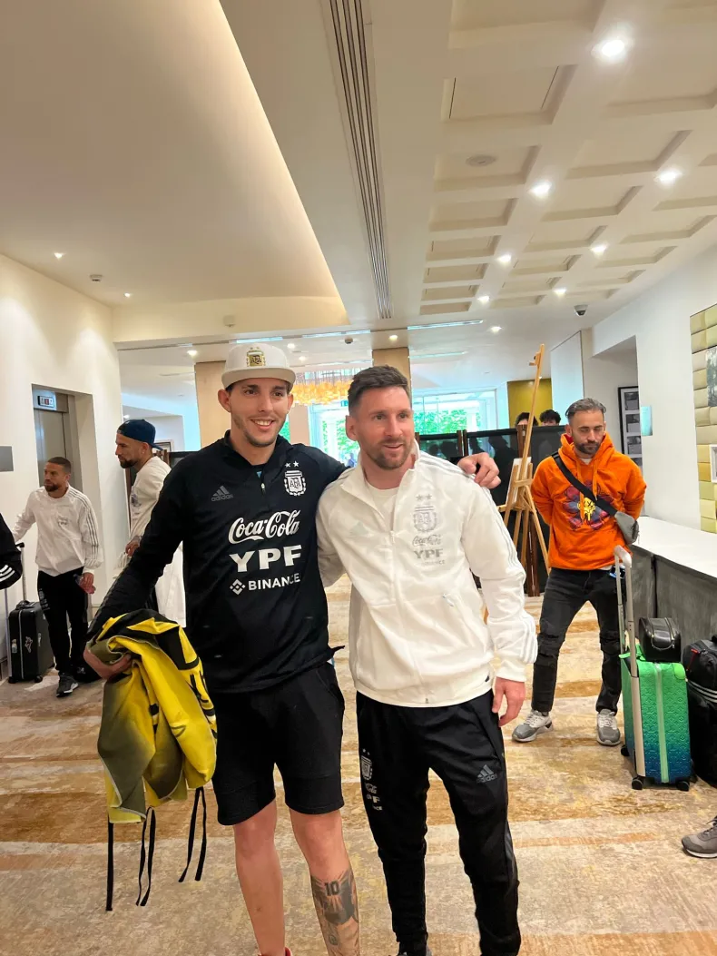 Solera, que recién acaba de levantarse para atender nuestro llamado (en Australia son las 7 horas del día sábado- están adelantados 14 horas) ,cuenta que cuando la Selección jugó la Finalissima con Italia en Londres, en junio pasado, estuvo hospedado en el mismo hotel en donde se encontraba el equipo dirigido por Scaloni. "Puede hablar con "Chiqui" Tapia y Jorge Miadosqui, quienes me prometieron que si la Selección ganaba, al día siguiente Messi me firmaría la pierna izquierda en donde tengo un tatuaje con su cara", relata.
