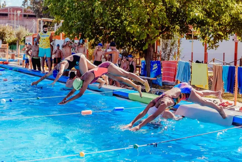 La Escuela hoy trasladó su sede de trabajo y aprendizaje a una pileta del departamento de Santa Lucía sabiendo que es de las que está en regla desde manera temprana en la provincia y eso abrió puertas para chicos de otros departamentos.