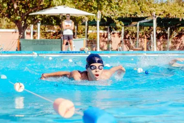 "Para nuestros chicos cauceteros hay un servicio de transporte que los llevan desde la casa hasta la pileta. Así llegan desde San Martín, 25 de Mayo y Angaco" remarca Julieta quien agrega que ese servicio le ha permitido tener una mayor cantidad de alumnos.