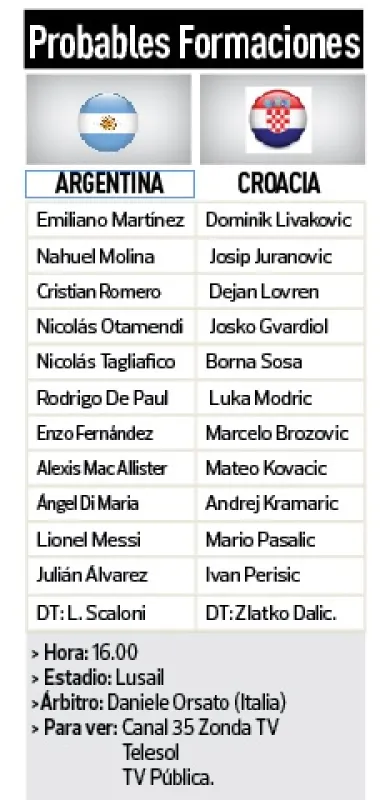 Argentina se mide desde la 16.00 con el actual subcampeón del mundo: Croacia buscando el pasaje a la final. De Paul y Di María irían de titulares ante un equipo cargado de figuras.