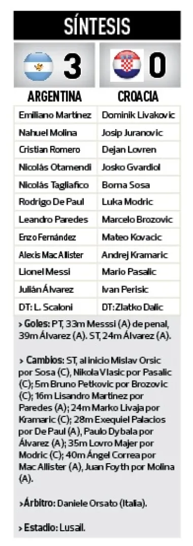 Con Messi de chofer, y decenas de millones empujando en rincones de todo el mundo, vencimos a Croacia 3-0 y estamos en la final de la Copa del Mundo. Sí, otra vez Argentina jugará el partido más importante que tiene el fútbol. Sí, todos vamos por la tercera.