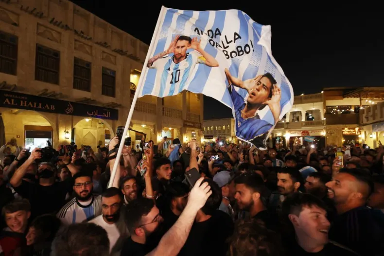 En horas de la noche qatarí y tarde de Argentina, miles de compatriotas alientan a la selección en las calles de Doha. Se viene la final del Mundo.