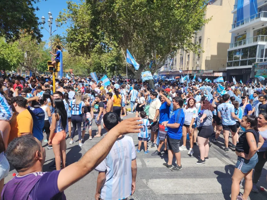 Con banderas, cánticos y baile, miles de sanjuaninos disfrutaron el triunfo de la selección Argentina. Desde que finalizó el partido, fueron llegando al lugar donde se concentran los festejos.