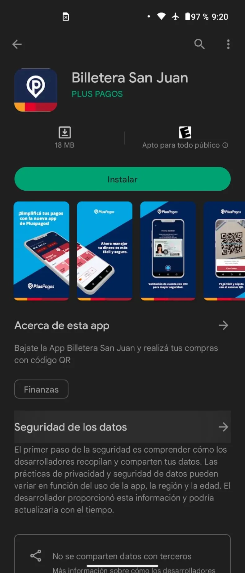 - Descargá la app Billetera San Juan – Plus Pagos (Play Store o App Store).