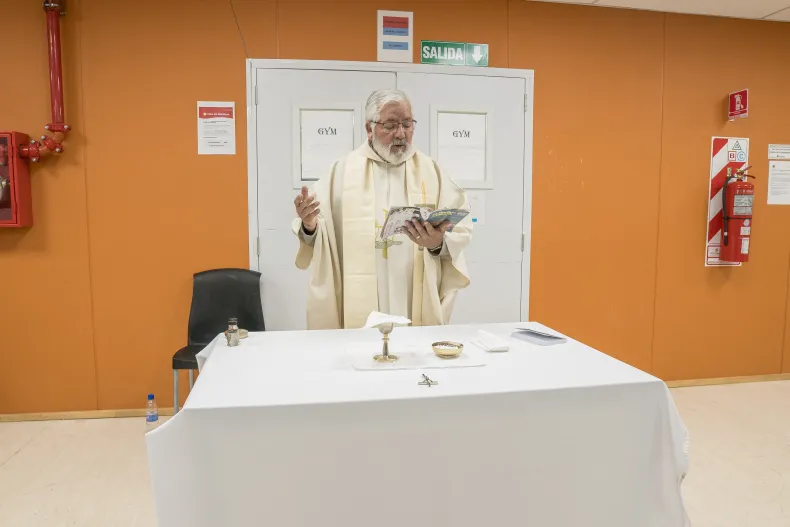 El padre López inició la Misa con palabras de agradecimiento por la invitación para conocer un proyecto minero tan distante y prometedor, y la oportunidad de oficiar una misa para los trabajadores que están dedicando tanto compromiso y empeño en llevarlo adelante.