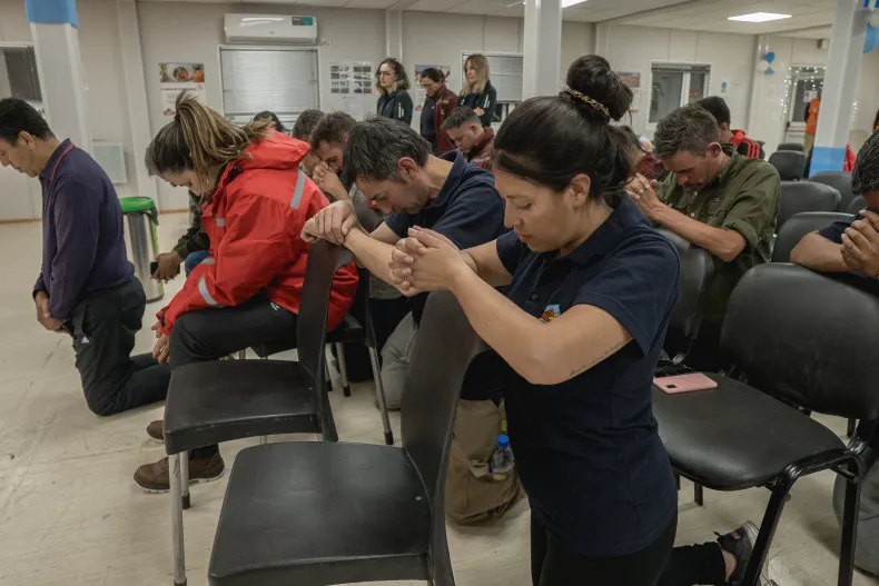 Al terminar la Misa, continuó la oración interreligiosa con el pastor Angel Carrizo y Carina González. Cada uno, a su turno, coincidió en agradecer la invitación para conocer el Proyecto, y ofrecieron un mensaje de apoyo y aliento hacia los trabajadores, sobre quienes oraron para bendecir a los presentes, sus familias y todos los trabajadores en el Proyecto y exhortaron a continuar desarrollando su trabajo siempre pensando en el cuidado propio, de sus compañeros y de la Casa Común, en alusión al concepto usado por el Papa Francisco para referirse al planeta.