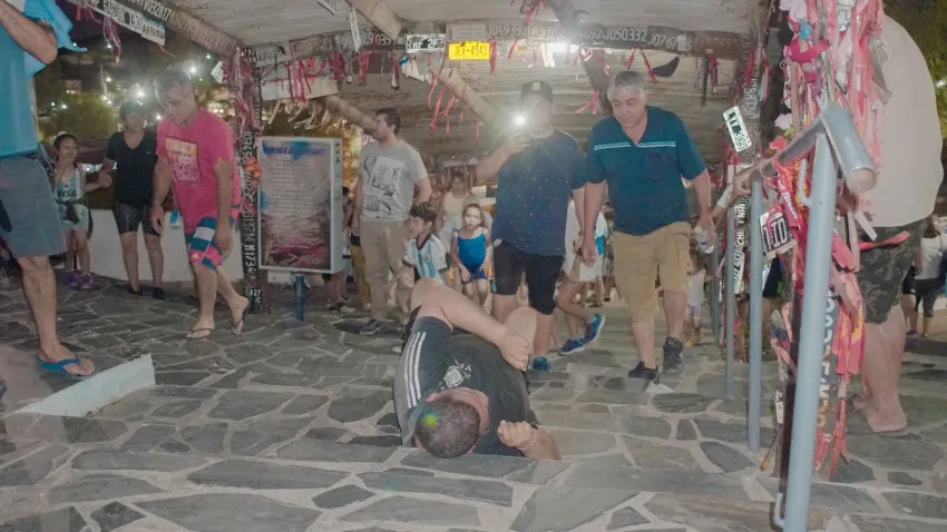 Nacif Farías es dirigente deportivo y muy devoto de la Difunta Correa y le prometió que si salía campeon Argentina subía de espaldas a lo mas alto del santuario. El domingo mismo cumplió su promesa.