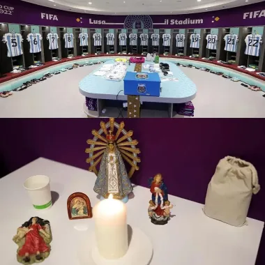 En le vestuario argentino estaba presente la imagen de la Difunta Correa que es muy especial por el material del que esta hecho y porque además está bendecida la imagen y estuvo en todos los partidos de Argentina en el Mundial. El otro detalle lo contó el propio Nacif Farías.