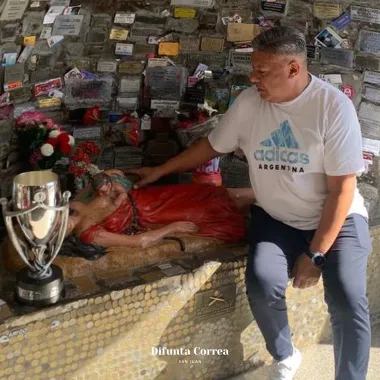 Chiqui Tapia es otro gran devoto de la Difunta Correa y de hecho es recordada su promesa cumplida a la misma subiendo de rodillas a lo mas alto.