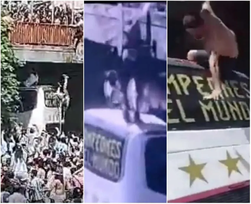 La Scaloneta se encontraba de caravana por la obtención de la copa del Mundial Qatar 2022. Todo marchaba lento y la gente estaba muy loca por la euforia que generó la selección en los argentinos. En este contexto, dos hinchas se tiraron hacia el colectivo que llevaba la Scaloneta. Uno cayó al suelo desde un puente.