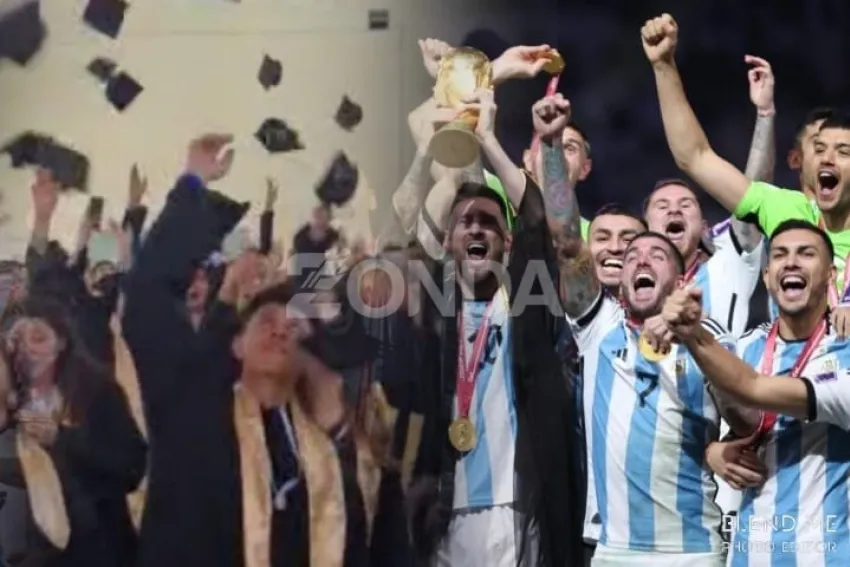 Cerraron su acto de egresados entonando el himno nacional de la scaloneta, la canción con la que los argentinos apoyaron a la selección para ganar el mundial.