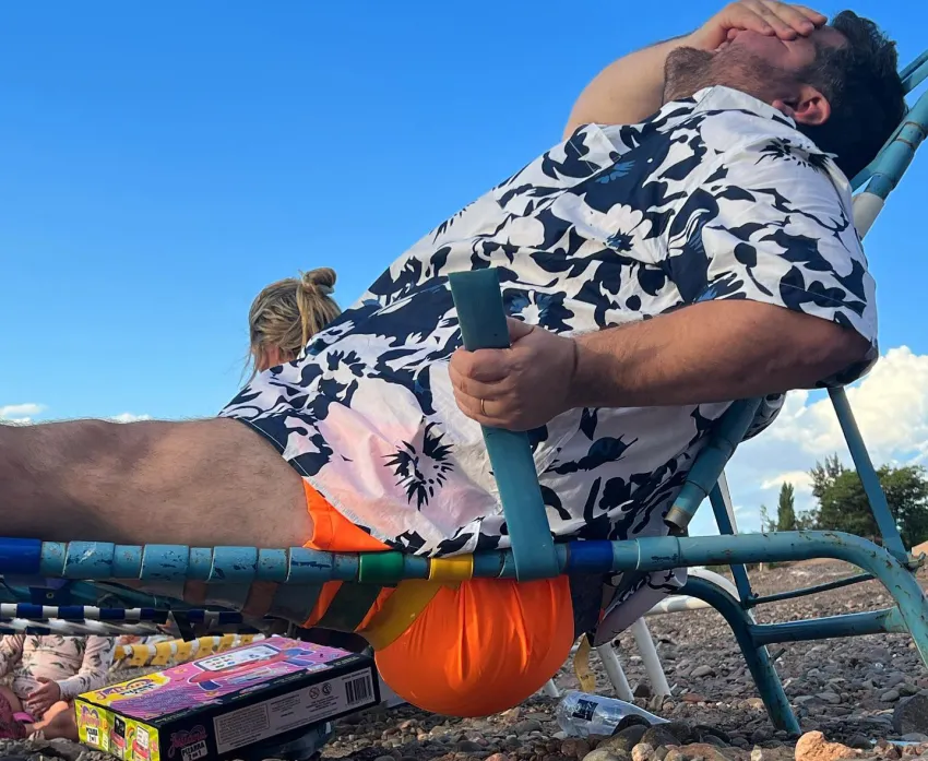 Fiel a su estilo divertido, la última foto que subió a Facebook fue donde se lo puede ver sentado en una reposera que no resistió a su peso con la leyenda "Pasaron cosas".