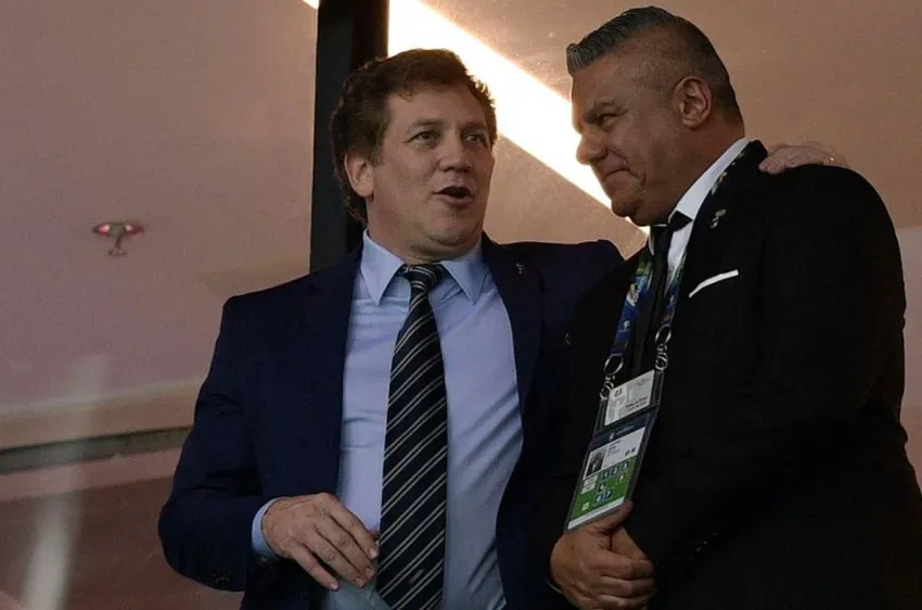 El presidente de Conmebol Alejandro Dominguez junto a Claudio Tapia, titular de AFA