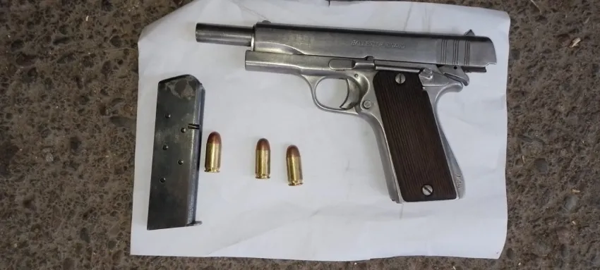 El arma que fue secuestrado por los pesquisas de la Brigada de Investigaciones sur, en uno de los autos secuestrados.