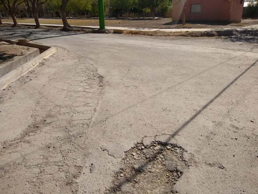 El barrio Pablo Marcó, ubicado a pocas cuadras de la villa Aberastain, en Pocito, es uno de los más antiguos en el departamento. Hoy, las calles no lucen como aquel entonces, su pavimento está prácticamente destruido. Los vecinos piden urgemte la repavimentación.